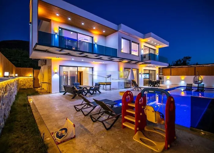Situata a una distanza di 500 metri da dalla Patara Amphitheatre, la Villa Lycian-Kalkan 3 Bedroom-2 Jakuzzies-Sauna-Turkish Hamam-Huge Private Pool And Lovely Garden offre una piscina con trampolino dotata di una sauna.